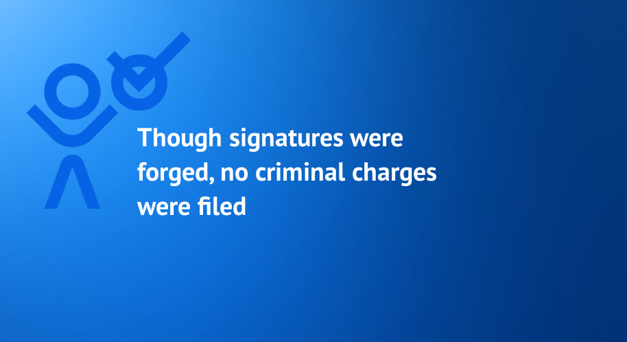 Though signatures were forged, no criminal charges were filed