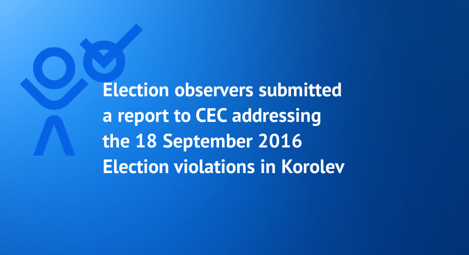 Election observers submitted a report to CEC addressing the 18 September 2016 Election violations in Korolev