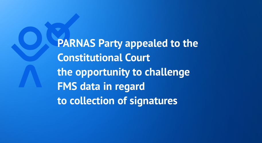 PARNAS Party appealed to the Constitutional Court the opportunity to challenge FMS data in regard to collection of signatures