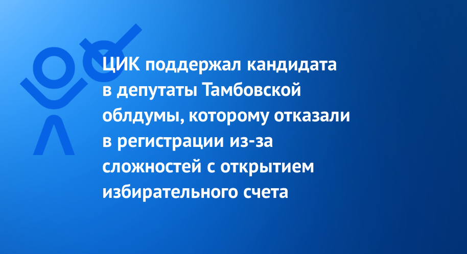 ЦИК поддержал кандидата в депутаты Тамбовской облдумы, которому отказали в регистрации из-за сложностей с открытием избирательного счета