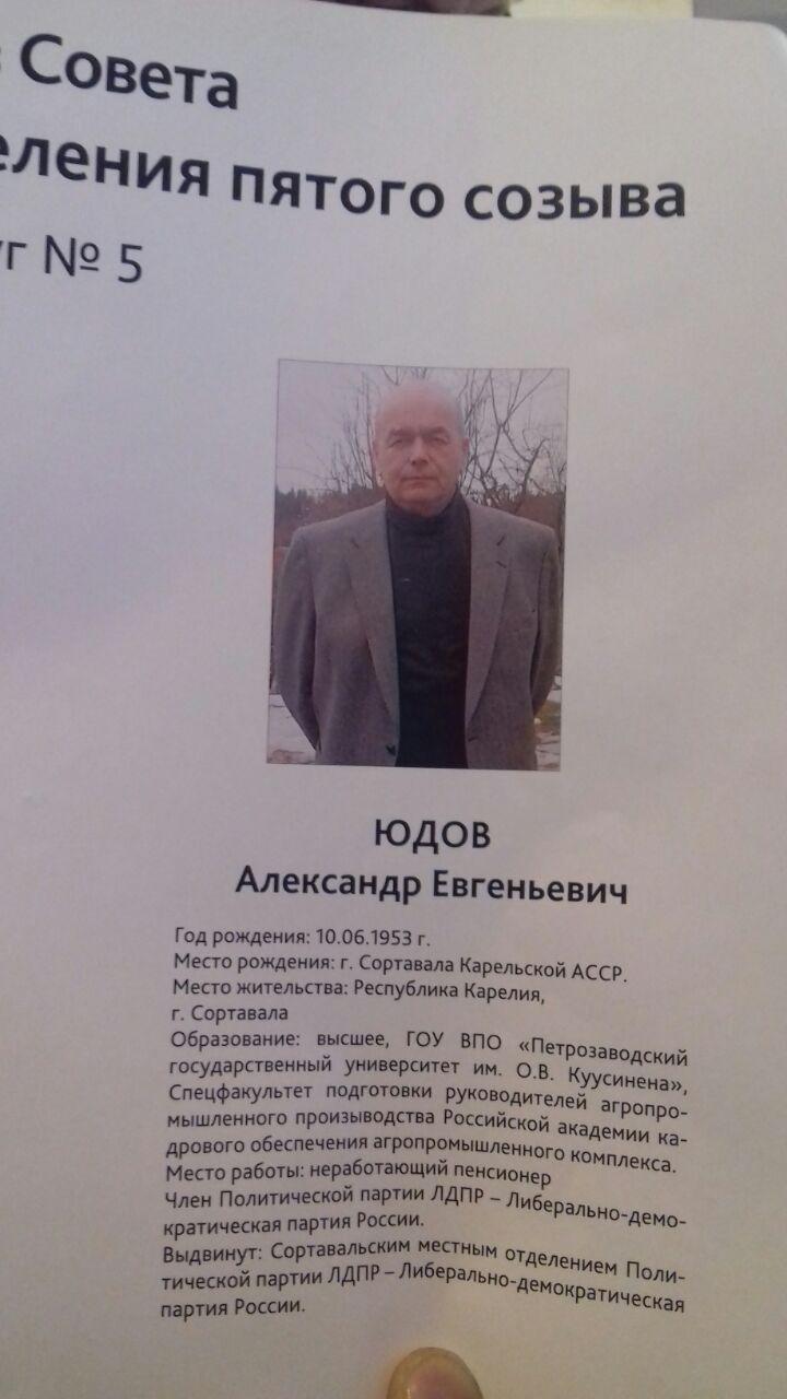Его имя можно найти в списке членов участковой избирательной комиссии №133 на том же сайте регионального избиркома Карелии.