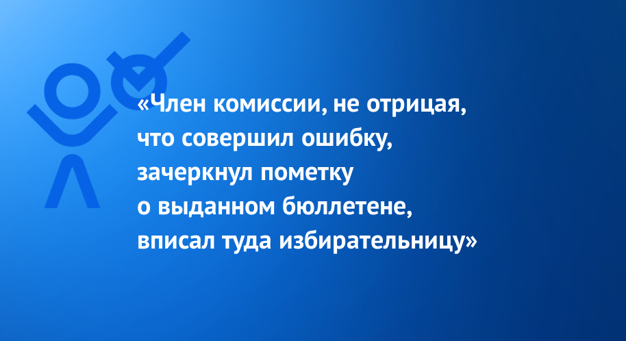 "Член комиссии, не отрицая, что совершил ошибку, зачеркнул пометку о выданном бюллетене, вписал туда избирательницу"