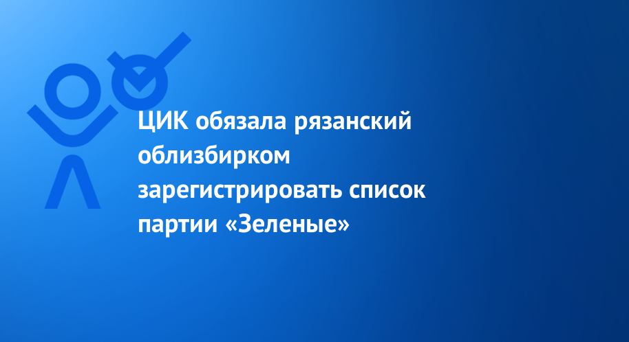 ЦИК РФ принудила облизбирком зарегистрировать «Зеленых», сочтя некорректным отказ в регистрации списка. Заявление о регистрации списка партии «Зеленые» на выборах в Рязанскую областную думу, назначенных на 13 сентября 2015 года, будет рассмотрено облизбиркомом снова.
