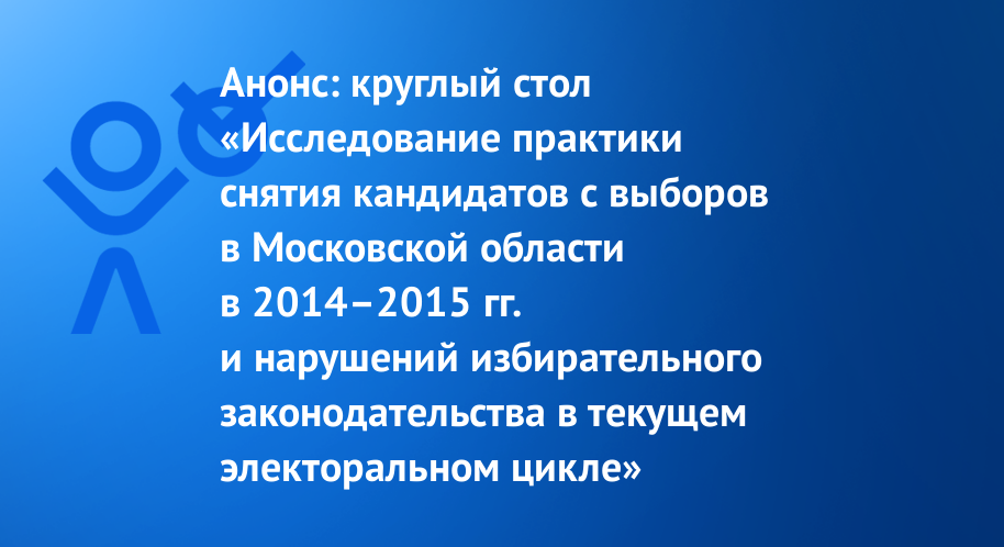 Анонс: круглый стол «Исследование практики снятия кандидатов с выборов в Московской области в 2014–2015 гг. и нарушений избирательного законодательства в текущем электоральном цикле»