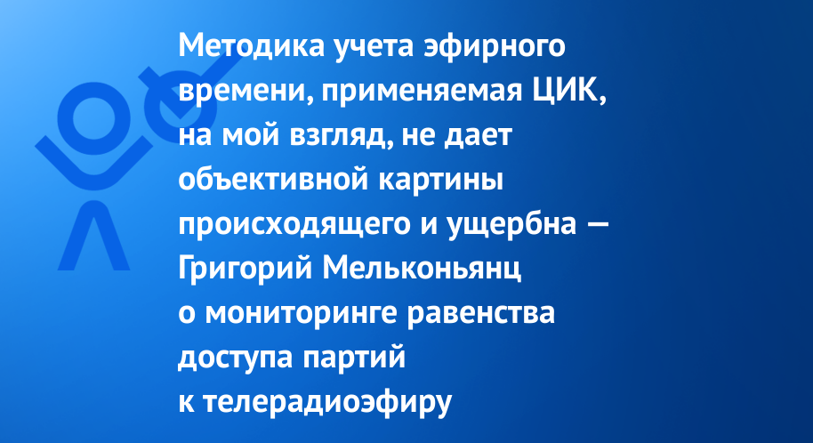 Методика учета эфирного времени, применяемая ЦИК, на мой взгляд, не дает объективной картины происходящего и ущербна -- Григорий Мельконьянц о мониторинге равенства доступа партий к телерадиоэфиру