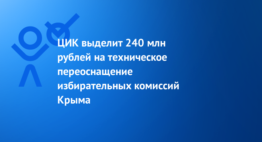 «В постановлении мы заложили цифру в 240 млн рублей одноразово на техническое переоснащение избирательных комиссий Республики Крым и города Севастополя», — сказал глава ЦИК РФ Владимир Чуров. По его словам, цифра минимальная, однако «обеспечит полное оснащение уже в этом году» избирательных комиссии Крыма техническими средствами ГАС «Выборы».