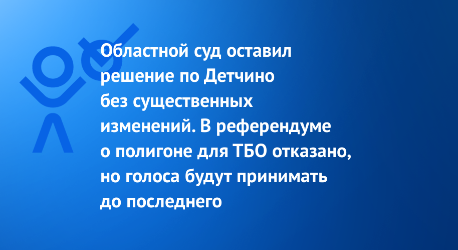 Областной суд оставил решение по Детчино без существенных изменений. В референдуме о полигоне для ТБО отказано, но голоса будут принимать до последнего