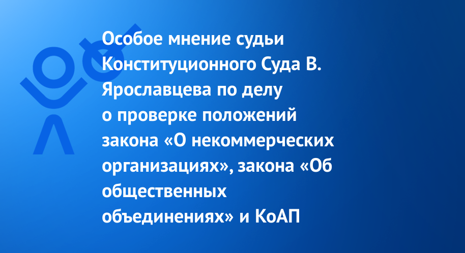 Особое мнение судьи Конституционного Суда В. Ярославцева по делу о проверке положений закона «О некоммерческих организациях», закона «Об общественных объединениях» и КоАП