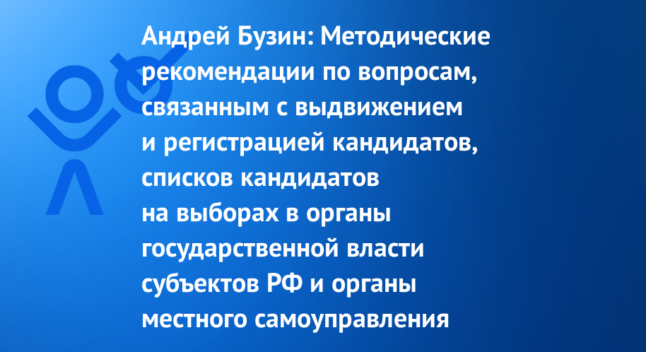 Андрей Бузин: Методические рекомендации по вопросам, связанным с выдвижением и регистрацией кандидатов, списков кандидатов на выборах в органы государственной власти субъектов РФ и органы местного самоуправления