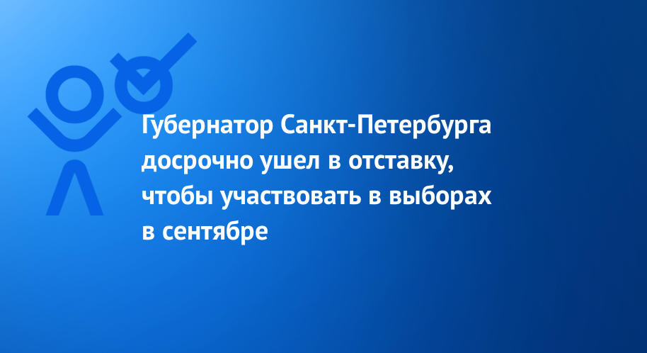 Губернатор Сaнкт-Петербурга досрочно ушел в отставку, чтобы участвовать в выборах в сентябре