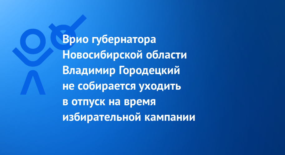 Врио губернатора Новосибирской области Владимир Городецкий не собирается уходить в отпуск на время избирательной кампании