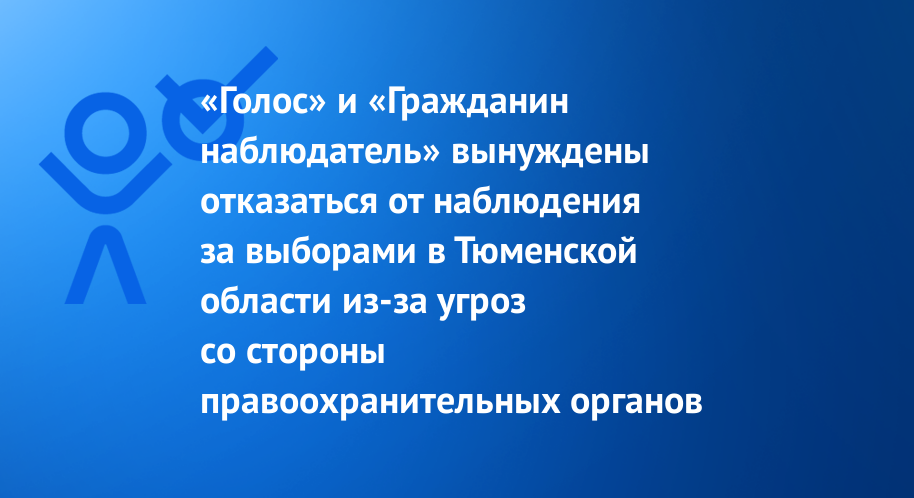 "Голос" и "Гражданин наблюдатель" вынуждены отказаться от наблюдения за выборами в Тюменской области из-за угроз со стороны правоохранительных органов